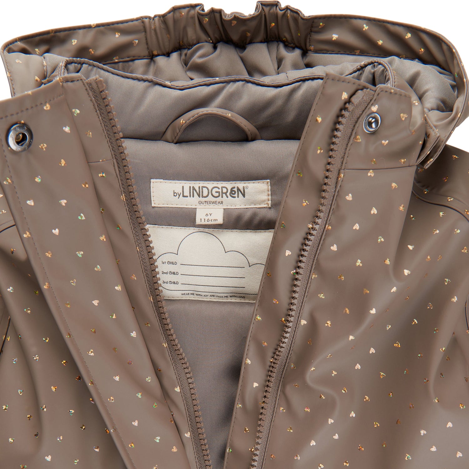 Gunhild Vatteret PU Regnjakke - Golden Hazel Glittery Heart AOP
