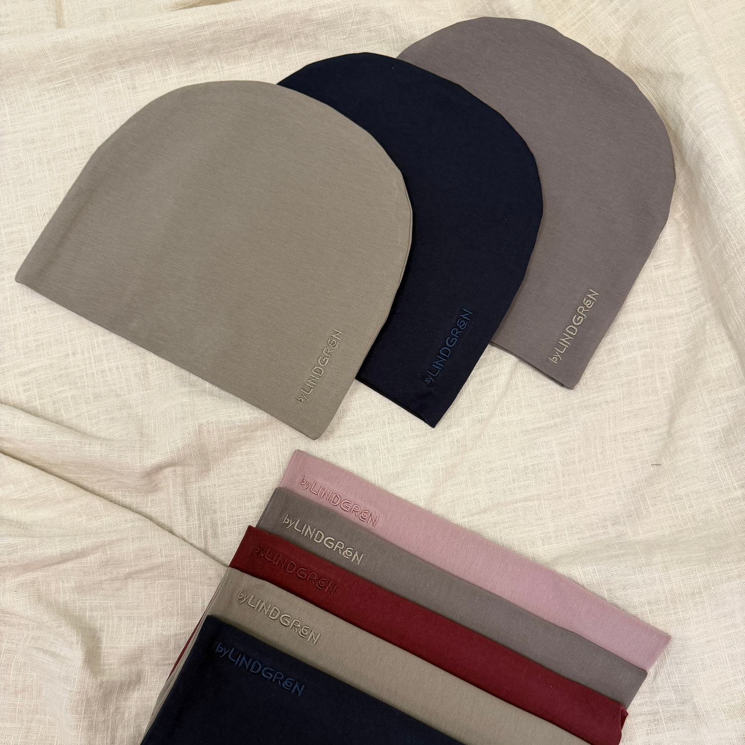 Skøn dobbeltlags-hue fremstillet i blødt økologisk bomuld, der ikke kradser.